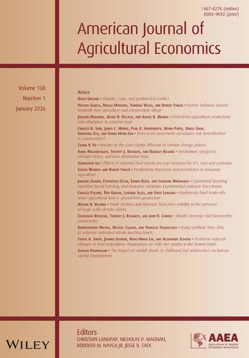 García, V, Möhring, N., Wang, Y., & Finger, R. (2025). Farmer Behavior towards herbicide-free agriculture and conservation tillage. American Journal of Agricultural Economics 108 (1). pp 28-53. https://onlinelibrary.wiley.com/doi/10.1111/ajae.12550